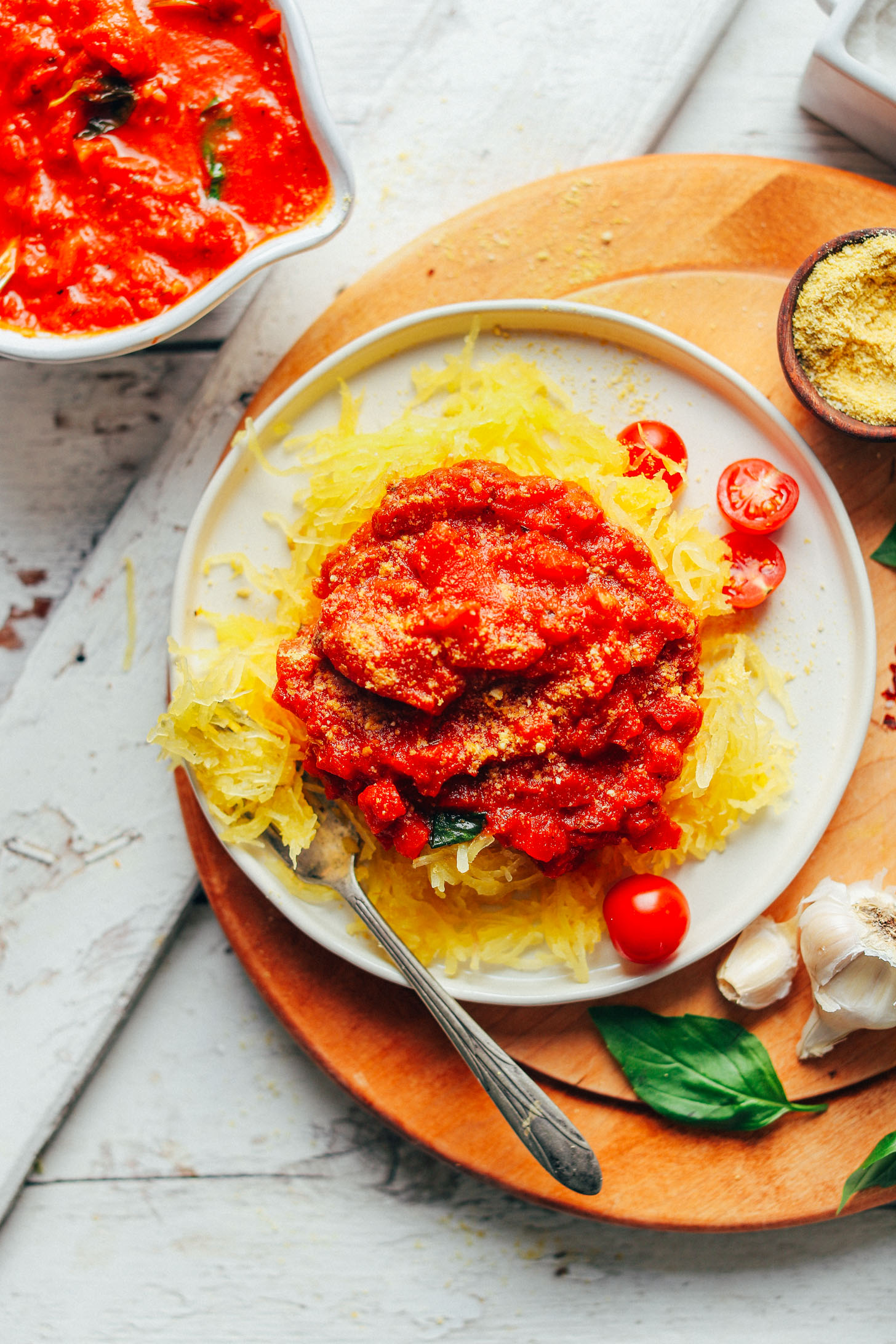 5. Serve with your favorite Italian dishes, such as Eggplant Roll-Ups, Eggplant Lasagna, Chickpea Bolognese, Spaghetti Squash Lasagna, or Veggie Meatballs. Or simply over a serving of cooked pasta of choice or spaghetti squash.